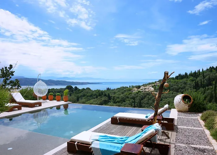 Sinium Luxury Villa ligger cirka 10 minutters kørsel fra Old Perithia Παλαιά Περίθεια og tilbyder overnatning med gratis parkering, en udendørs pool og en solterrasse. Der er også tv, en balkon og en spiseområde på værelserne, samt et køkken med et køleskab og glas.